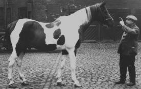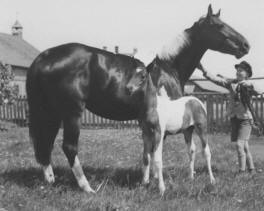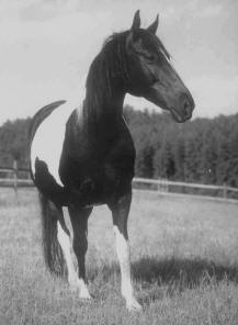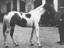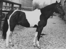 The piebald stallion Hausmeier born 1937 by Hausfreund from Carin by Carol bred by the family of von der Goltz. Hausmeier was bought by Trakehnen for the stud of Braunsberg. No sign of him nore any offspring after the war