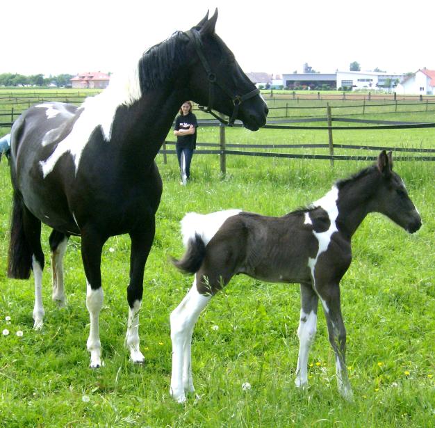 Trakehner bred. (Also see our page "Offspring").![]() Malindi and her 4 days old colt by KASPAROW Trak.