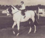 Scheckenliebhaber war auch die Familie Kaeswurm-Schulze aus Puspern. Ihnen gelang es als einzige eine handvoll Schecken in den Westen zu retten darunter die Rappscheckstute KARIN, deren Tochter noch 3 Scheckfohlen brachte, als letztes den Rappschecken SCHILL II, der unter dem Springreiter E.H. Cuepper im großen Sport Furore machte. Neben zahlreichen S-Erfolgen im In- und Ausland errangen beide 1970 in Belgien den Meistertitel der ländlichen Senioren. Auch vorher wußte der 175 cm große Schill zu glänzen, als er mit Cuepper in Antwerpen eine 1.90 m hohe Mauer übersprang. Leider wurde mit Schills Kastration das endgültige "Aus" der deutschen Nachkriegsschecken Trakehner Abstammung besiegelt, zu dem ging der Zucht wertvolles Spring-Genpotential verloren. |