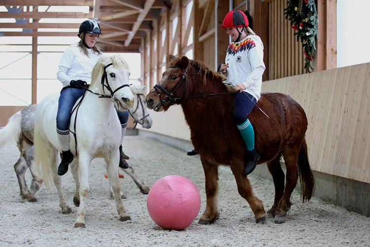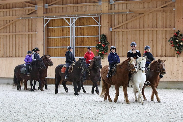| Die Jüngsten beim Handpferdereiten mit den braven Isis des Gestüts |