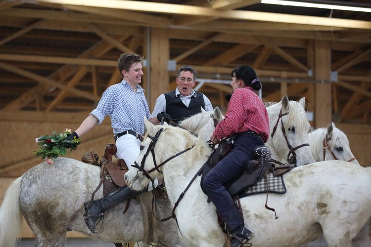 | Reitschülerquadrille mit Trakehner Schecken |