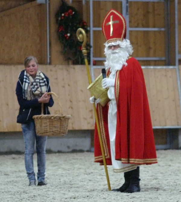 | Der Nikolaus liess es sich nicht nehmen auf auf seinem langen Ritt machte er einen Abstecher zu uns. Er ließ seinen Knecht Rupprecht hauptsächlich "Leckerlis" verteilen. Die Rute gab's nur selten |