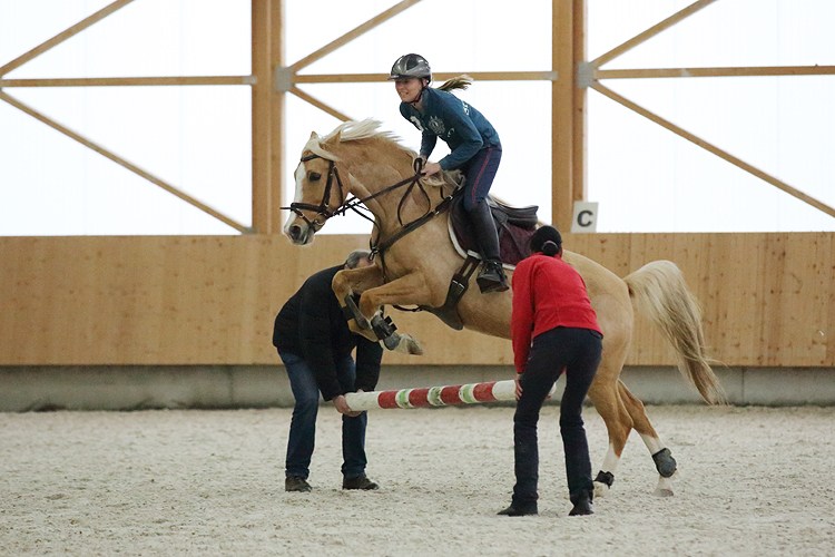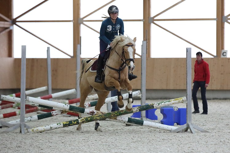 | Pauline Kiggin mit Dyke beim fetzigen In - Out Reiten über Stangen Kreuze |