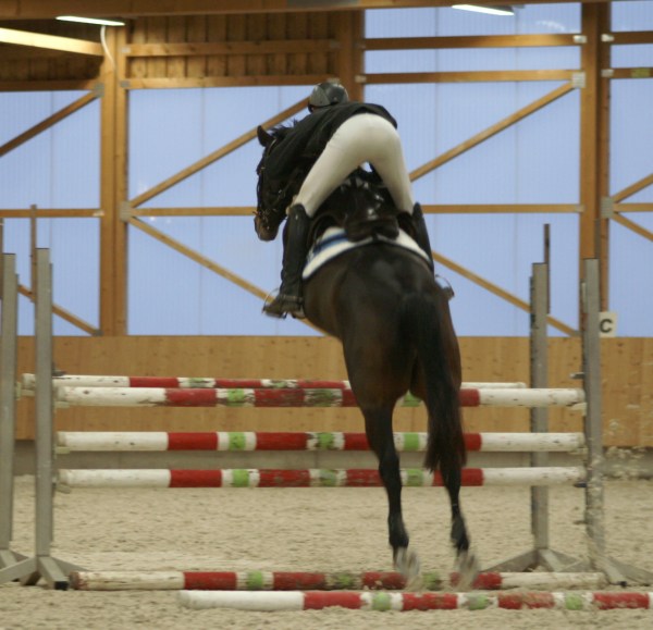 | Showspringen mit Jan Matthias und seinem Pferd Granulin hier beim Warmreiten |
